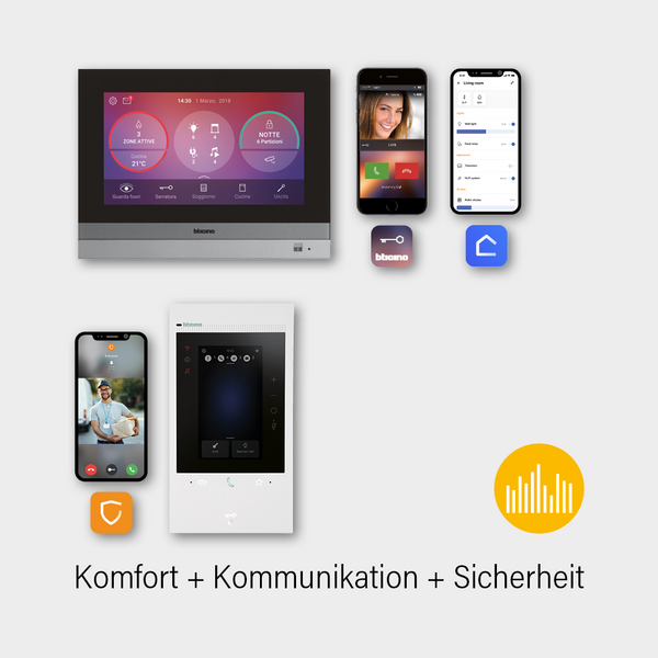 Entscheiden Sie sich für MyHOME und wählen Sie das passende 2-Draht-BUS-System in Verbindung mit Ihrem bevorzugten Server: Als Reiheneinbaugerät oder integriert in die Video-Innenstelle Classe 300EOS with Netatmo.