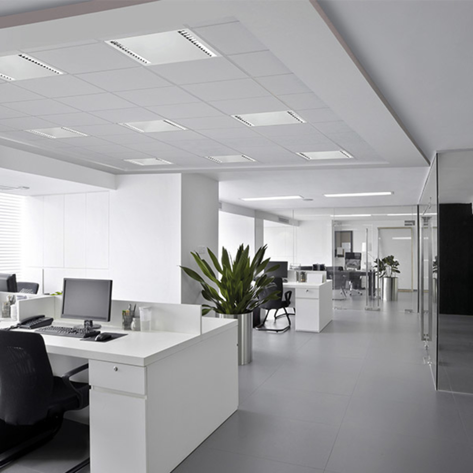 - Hocheffiziente LED-Leuchtenserie bestehend aus Anbau-, Pendel- und Einlegeleuchten